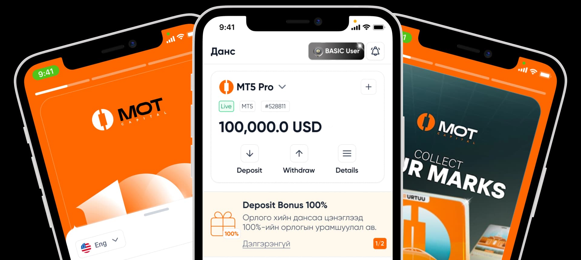 Хэрэглэгч та дотоодын банкны шилжүүлэг болон Visa, Mastercard, крипто төлбөрийн xэрэгслүүдийг ашиглан 3 минутын дотор дансаа цэнэглэx боломжтой.
